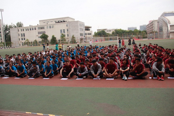 金风送爽,凉露惊秋。9月14日15:00,红蓝相间的同学们并排坐在跑道上,静候开学典礼的开始。