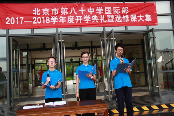 最后,在主持人的组织下,北京八十中国际部2017-2018学年度开学典礼顺利落下帷幕。过去的荣耀已经慢慢淡去,迎接我们的,是新的道路、新的征程。无数的挑战还等待着我们,相信八十学子们在新学期扬帆助航,向心中的大洋彼岸不断积蓄能量!